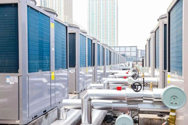 一般低温模块功率低、设备多、本钱高,700余平米裙楼房顶难以装置。海尔方案仅用39台热泵,设备占地削减35%,出资下降190万。